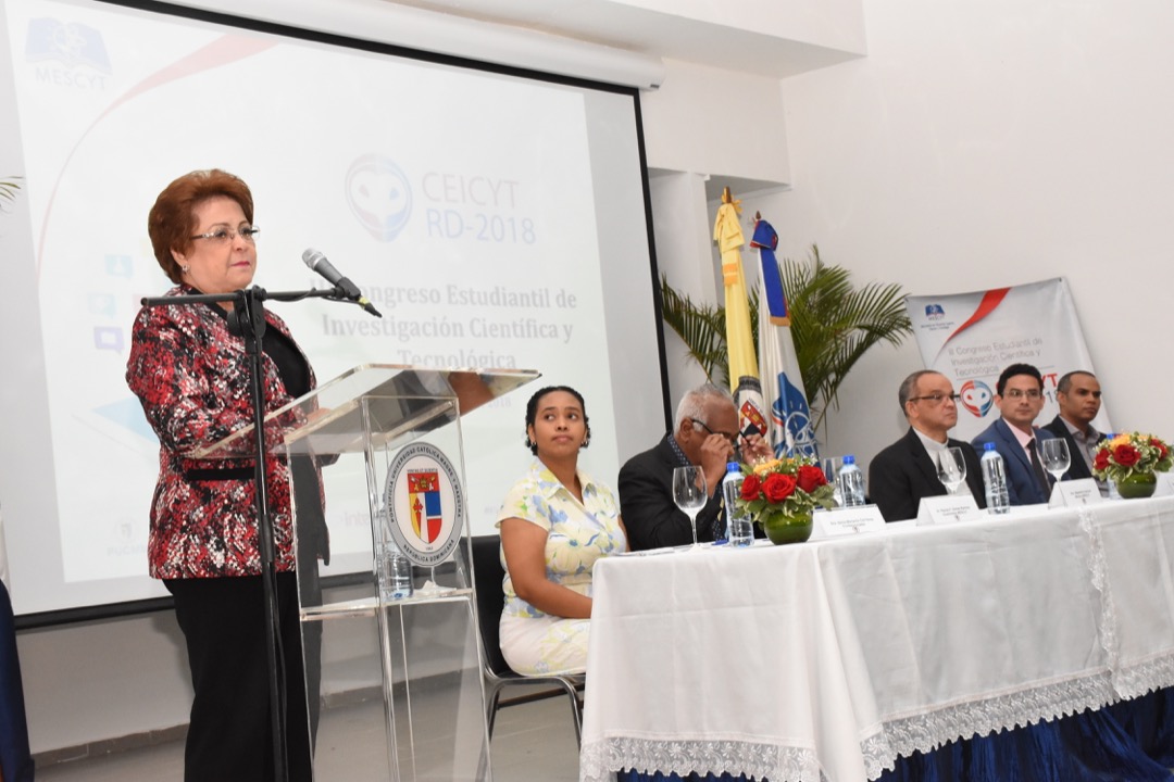 “Al igual que nuestro Presidente Lic. Danilo Medina Sánchez, el Ministerio de Educación Superior, Ciencia y Tecnología (MESCYT) reitera su compromiso de seguir acompañándolos, de manera particular a través de nuestro Viceministerio de Ciencia y Tecnología, en la ruta que han definido y decidido transitar y que les ha conducido hasta este III Congreso Estudiantil de Investigación Científica y Tecnológica (CEICYT RD-2018)”, agregó la funcionaria dirigiéndose a los estudiantes presentes que sometieron proyectos a concurso.