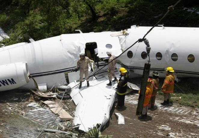 La aeronave se salió de la pista, calló en una hondonada hacia las 11.30 hora local (17.30 GMT) y quedó partida en dos.