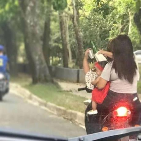 Fueron identificadas y sometidas a la acción de la justicia las hermanas que fueron forografiadas mientras se transportaban en una motocicleta sin casco protector, tomando alcohol con una menor en brazos en la una concurrida avenida de Jarabacoa.