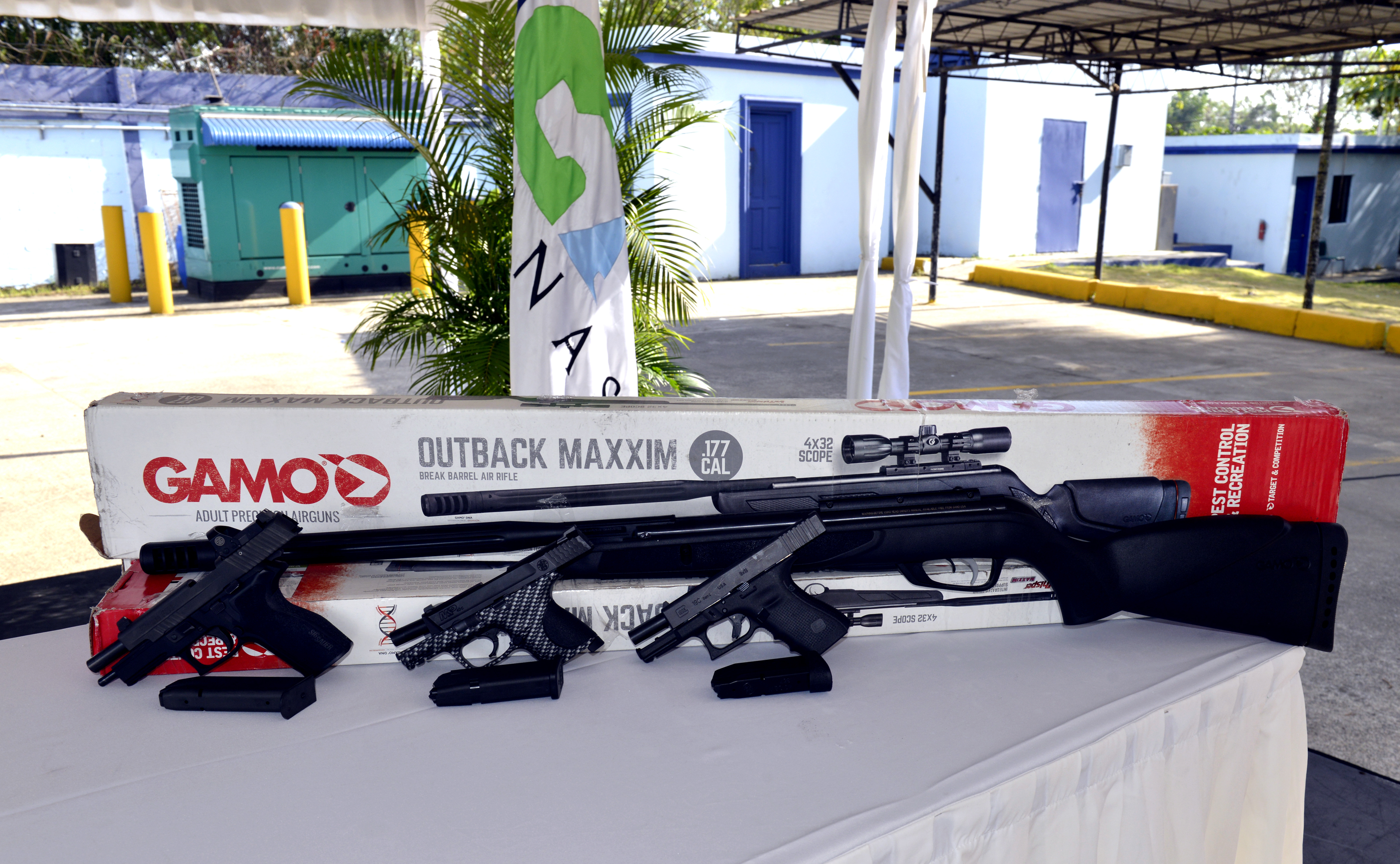Además de los celulares, equipos electrónicos y accesorios, dentro de las paletas también se encontraron tres (3) pistolas y cinco (5) rifles, armas que fueron entregadas este lunes al Ministerio de Defensa, de conformidad con lo que establece la ley. Asimismo, los agentes de Aduanas encontraron en dichas paletas mercancías variadas, tales como carteras, ropas, videojuegos y otras.