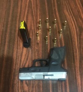 De acuerdo a un parte policial, el señor García Castillo admitió haber utilizado una pistola marca Taurus calibre 9, serie TLT16271, la cual portaba sin ningún tipo de documentos.