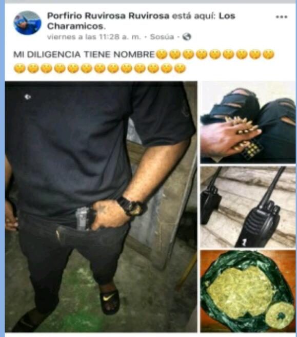 De acuerdo a un comunicado de prensa enviado a este medio por la Dirección Regional Norte de la Policía Nacional, las fotografías colgadas en las redes muestran una pistola, dos radios de comunicación, una caja de cápsulas calibre 9mm, y una funda plástica de color negro, en la cual se puede visualizar un vegetal que por su característica se presume que puede ser mariguana.