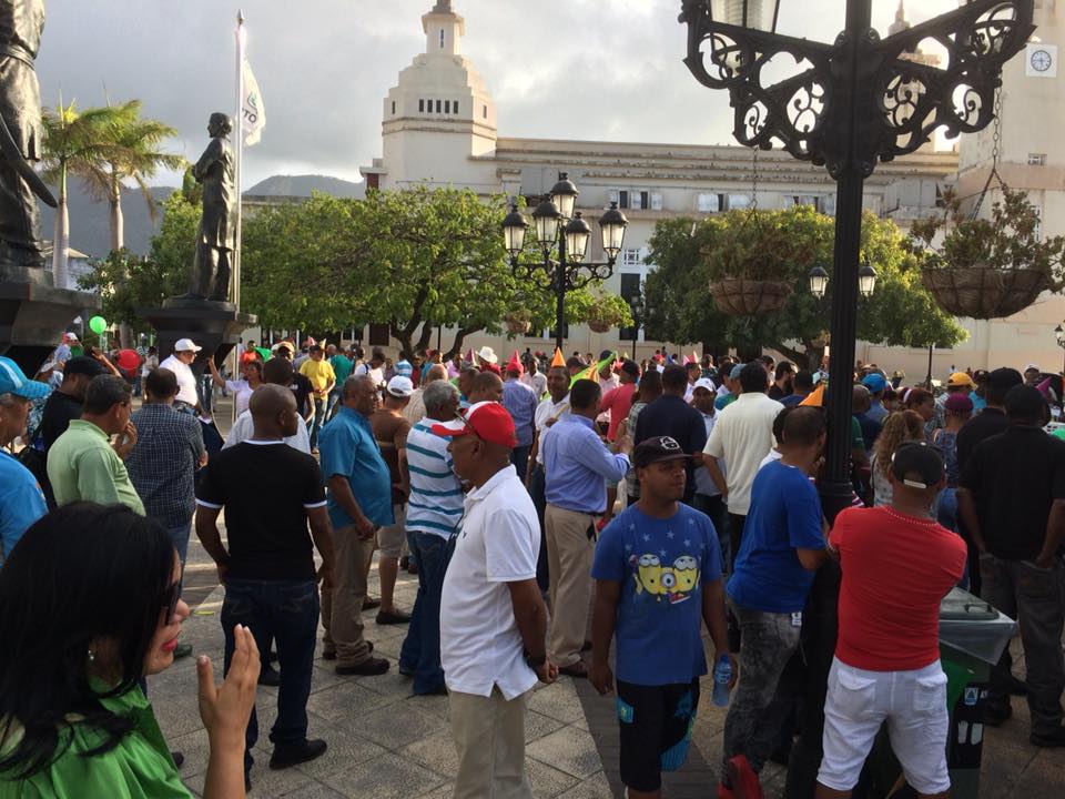 Al Ritmo de música revolucionaria, bizcocho, refrescos, pitos y gorritos los manifestantes leyeron un manifiesto en el cual demandan del estado dominicano y del alcalde del municipio el traslado de dicho vertedero.