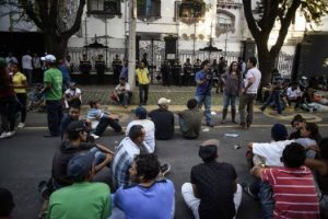El jueves, representantes de la caravana se reunieron con funcionarios de la oficina local de las Naciones Unidas y exigieron autobuses los llevaran a la frontera.