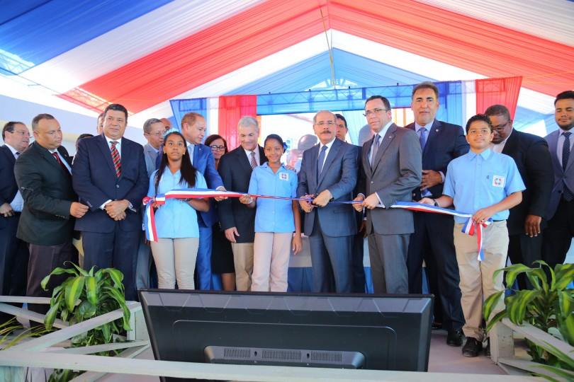 El presidente Danilo Medina entregó este martes los centros educativos del nivel primario Auristelia Restituyo y Salomé Ureña de Henríquez, para un total de 52 nuevas escuelas con Jornada Escolar Extendida para 24, 955 niños y jóvenes en esta provincia.