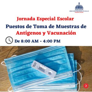 La Dirección Provincial de Salud en esta demarcación, junto a la Dirección Regional de Educación 11, realizó este jueves una “Jornada Especial de Toma de Muestras de Antígenos y Vacunación”, en las escuelas y liceos del Municipio San Felipe de Puerto Plata, Maimón y Los Hidalgos.