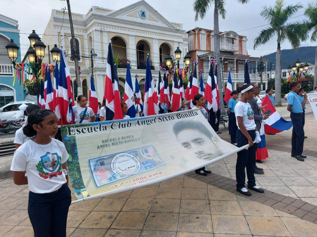 Felix Montan, Puerto Plata. – El distrito Educativo 11-02 en esta demarcación realizo la mañana de este miércoles, una parada cívica en plaza Independencia de aquí para dar continuidad con las actividades conmemorativas del trimestre patrio.
