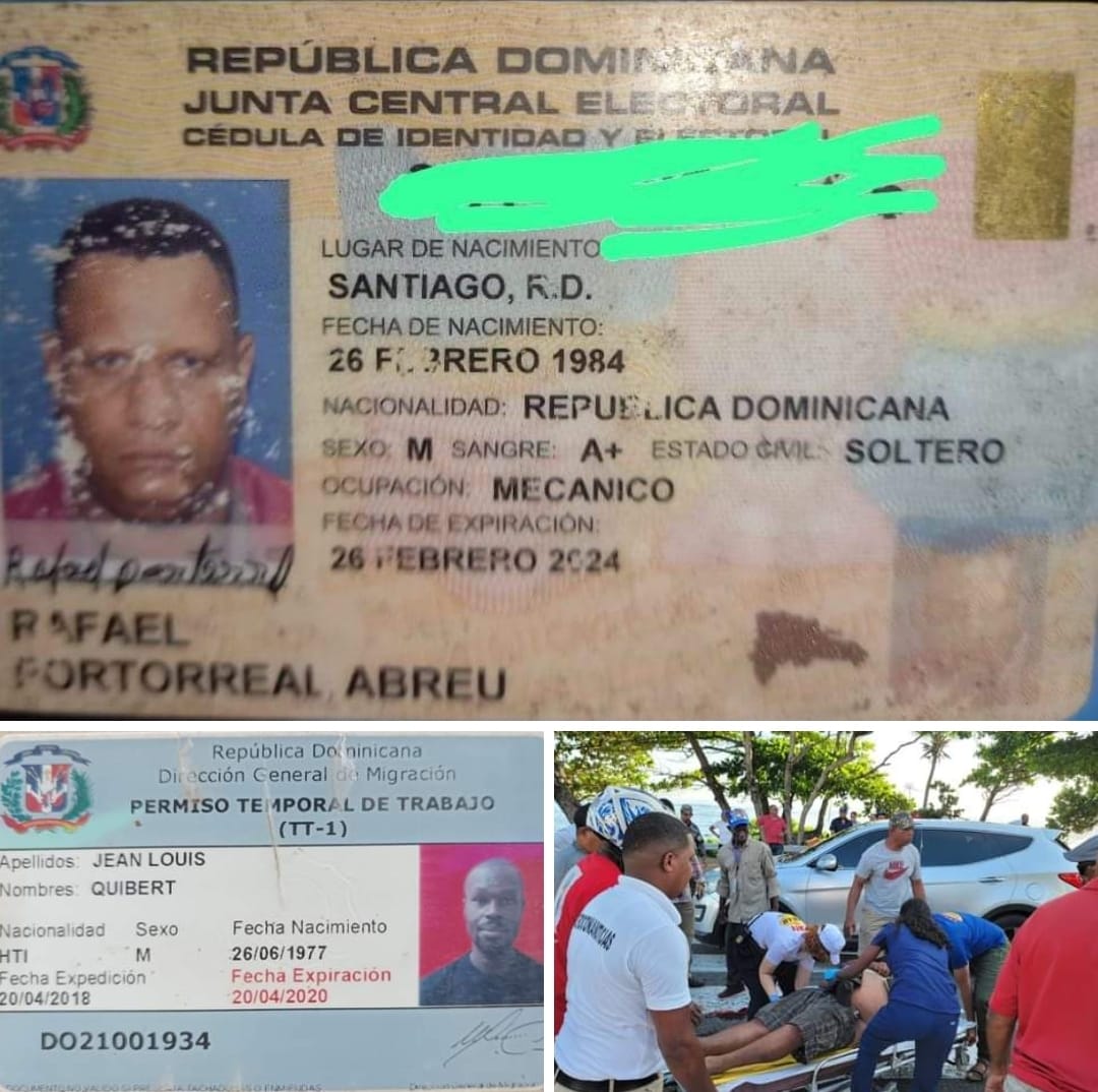 Se trata de los nombrados: Jean Luis de nacionalidad haitiana residente en el sector Bello Costero quien resulto con trauma Craneal a nivel frontal, mientras que el señor Rafael Portorreal Abreu, residente en el sector Padre Granero resulto con laceraciones múltiples.