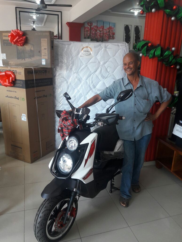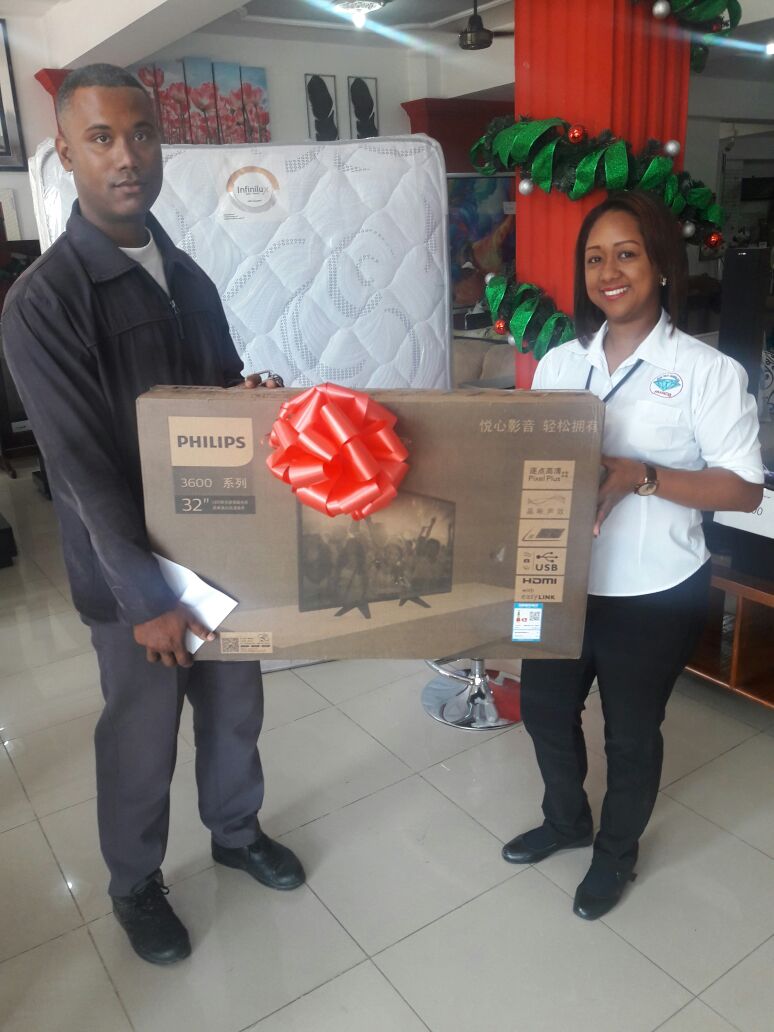 El televisor plasma de 32 pulgadas fue entregado al señor Jose Ismely Herrera Fortuna, quien reside en el Mirador Sur y gano el segundo lugar de este renglón. De igual forma el afortunado número uno lo fue Flor Rodríguez Almonte residente en el sector Buenos Aires de este municipio quien ganó una pasola Tauro O.KM.