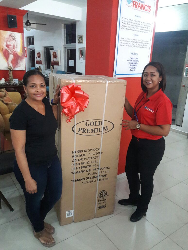 Mediante una actividad celebrada recientemente en las instalaciones de la empresa donde se realizo una rija Gold Primiun en la cual resultaron ganadores la señora Argelia Mora Ciriaco, residente en la calle 6 número 10 del sector Los Reyes, quien fue agraciada con una nevera, mientras que el segundo premio fue para Carlos José Almonte, residente en la calle primera número 6 del sector Villa Progreso, el cual recibió un televisor de 32 pulgadas ambos electrodomésticos perteneciente a la marca Gold Primiun.