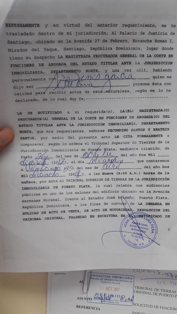 El profesional de la ingeniería, apuntó además, que dicho desalojo ejecutado por la oficina de abogados Pedro Domínguez Brito, no podía llevarse a cabo debido a que había una Litis de más de 23 años, aun con dos pendientes le fue otorgado por la abogada del Estado Vielka Calderón, el 26 de Junio, por lo que la calificó de ilegal dicha autorización.