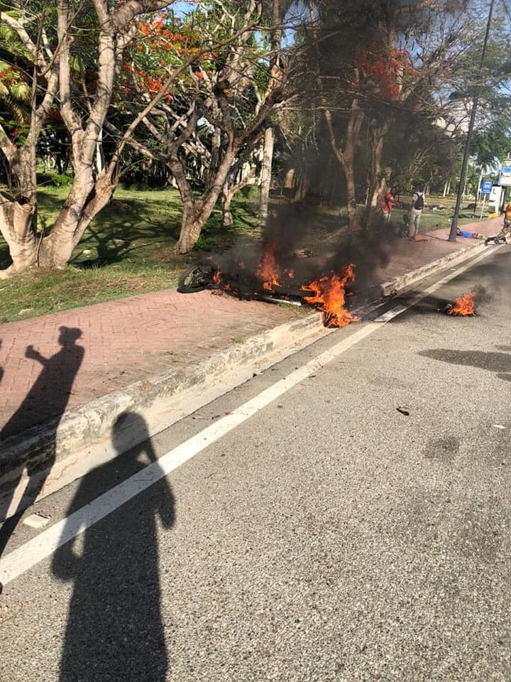 En dicho accidente una de la motocicleta se incendió, informaron los organismos de rescate quienes participaron en auxiliar a los afectados.