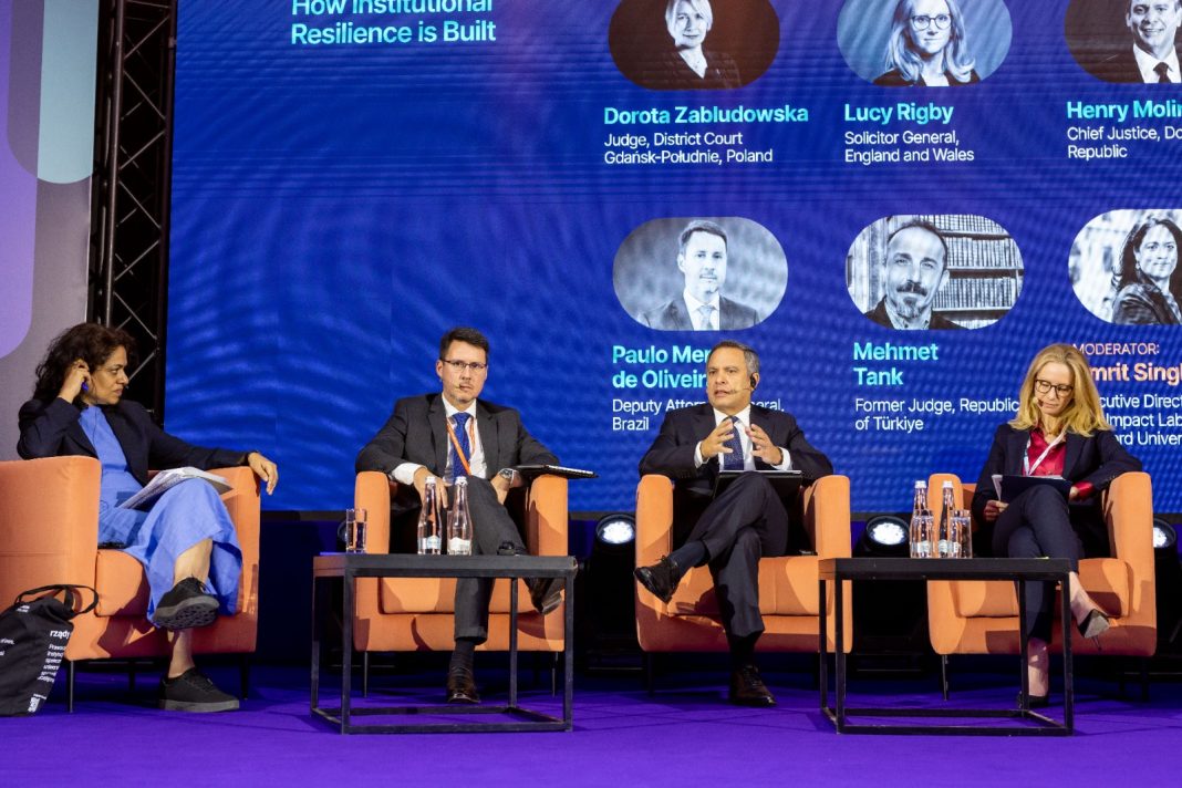 Durante el panel se debatió sobre cómo el autoritarismo en aumento amenaza a los sistemas de justicia y qué estrategias pueden implementarse para garantizar la resiliencia institucional, con un enfoque en el aprendizaje mutuo a partir de la experiencia de lucha en Polonia por la independencia judicial.
