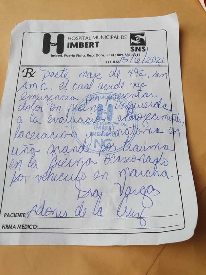 Con laceraciones en trauma después que pasara por encima de su pie una grúa al servicio de la Dirección General de Seguridad Transito y Trasporte Terrestre (Digesett) al señor José Adonis de la Cruz, cuando este supuestamente reclamaba a los agentes, en un hecho ocurrido este martes en este municipio.