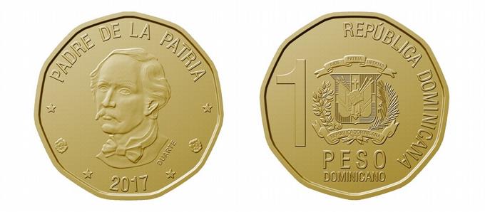 El Banco Central (BCRD) pone en circulación desde hoy lunes 27 de agosto la moneda de RD$1.00, año 2017, que mostrará la inscripción “Peso dominicano” debajo del Escudo Nacional.