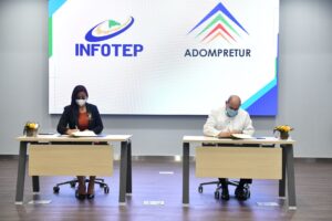 Con esta firma, el INFOTEP se compromete a facilitar las acciones formativas orientadas a los socios y relacionados a ADOMPRETUR, así como a diseñar y facilitar las capacitaciones según las necesidades de la asociación, y los profesionales del sector periodístico.
