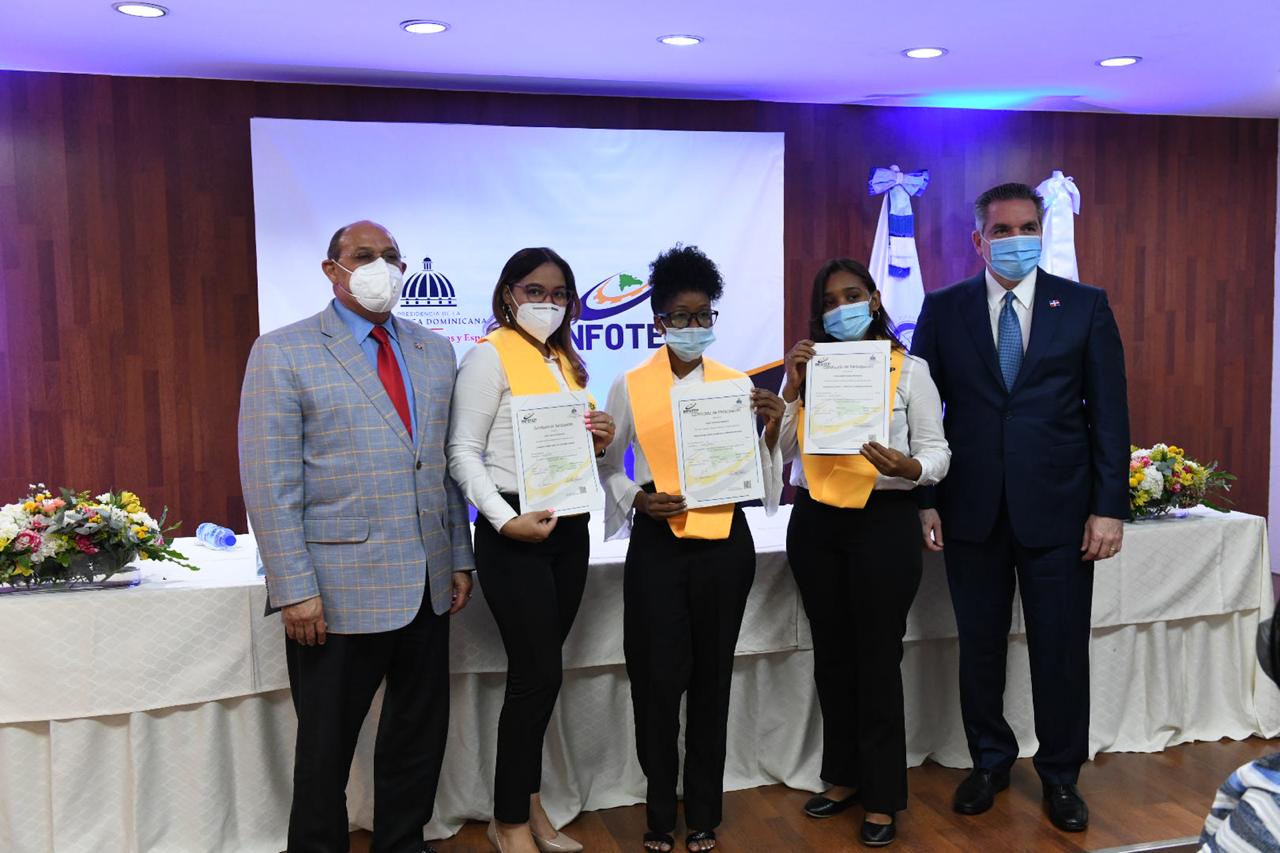 Además de la firma que ratifica el acuerdo, en la actividad, el INFOTEP y PROPEEP entregaron certificados a tres egresadas, en representación de más de 50 personas que a partir de hoy reciben sus certificaciones como Técnicas Cuidadoras de Niños y Niñas de la Primera Infancia.