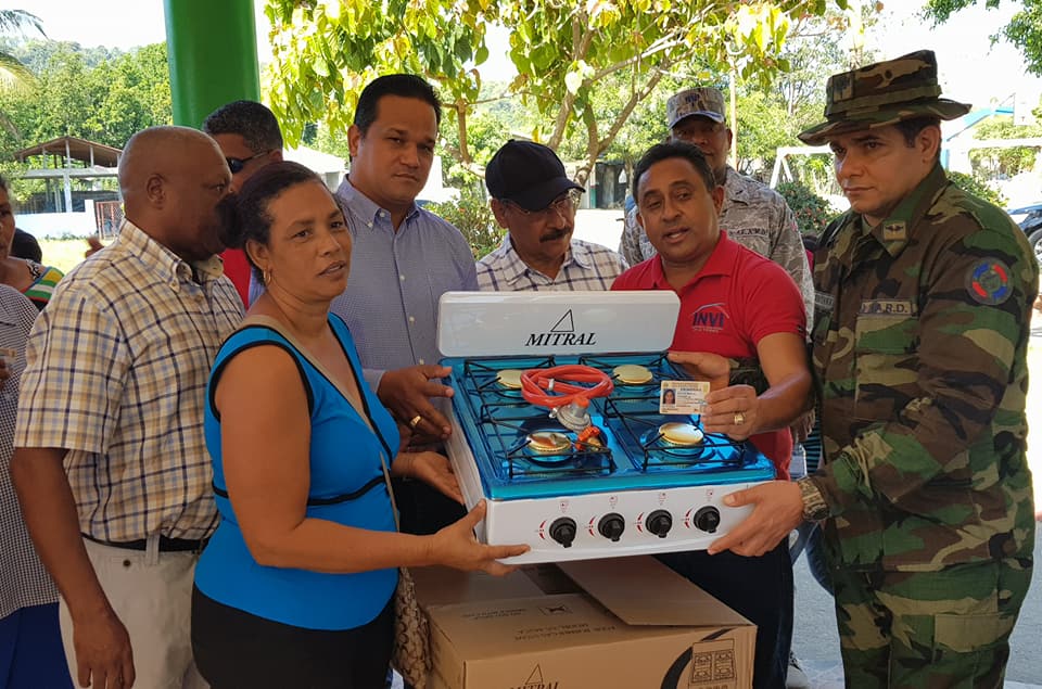 El director del Instituto Nacional de la Vivienda entrego la mañana de ayer decenas de estufas y cilindros de gas a personas que cocían sus alimentos en fogones en el paraje Angostura perteneciente al municipio de Imbert en esta provincia.