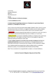 De igual forma, bandera Amarilla desde playa Cambiazo en el municipio de Luperón, hasta Playa la Ensenada en el municipio de Villa Isabela de esta provincia.