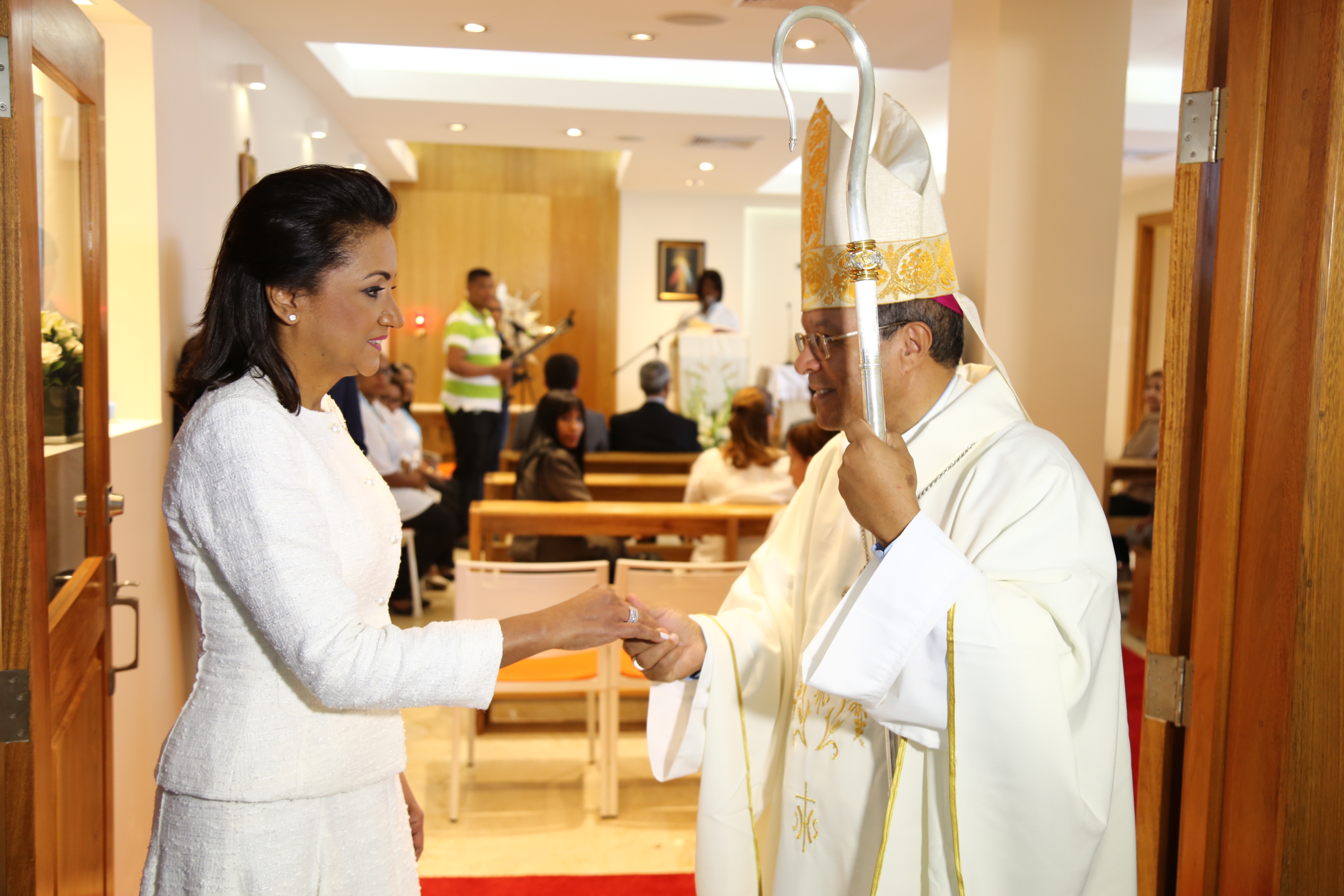 Cándida Montilla de Medina entregó las llaves de templo al obispo auxiliar de la Arquidiócesis de Santo Domingo, monseñor Faustino Burgos Brisman.