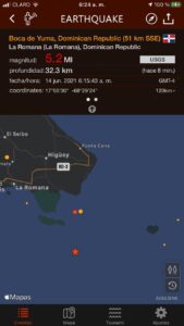 El temblor se produjo a una profundidad moderadamente poco profunda de 323 km debajo del epicentro cerca de La Romana, la magnitud exacta, el epicentro y la profundidad del terremoto podrían revisarse en las próximas horas o minutos a medida que los sismólogos revisen los datos y refinen sus cálculos, o cuando otras agencias emitan su informe.