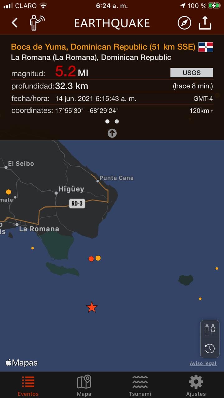 Un sismo de magnitud 5.2 ocurrió alrededor de las 6:15 de la mañana (hora local), a 76 km al sureste de República Dominicana y cuyo epicentro se registró en La Romana informó el Servicio Geológico de los Estados Unidos.