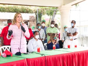 En Luperón, la candidata vicepresidencial realizó una donación de lámparas ultravioleta para desinfección, al hospital municipal Pablo Morrobel Jiménez y fue recibida en el local de la FP.