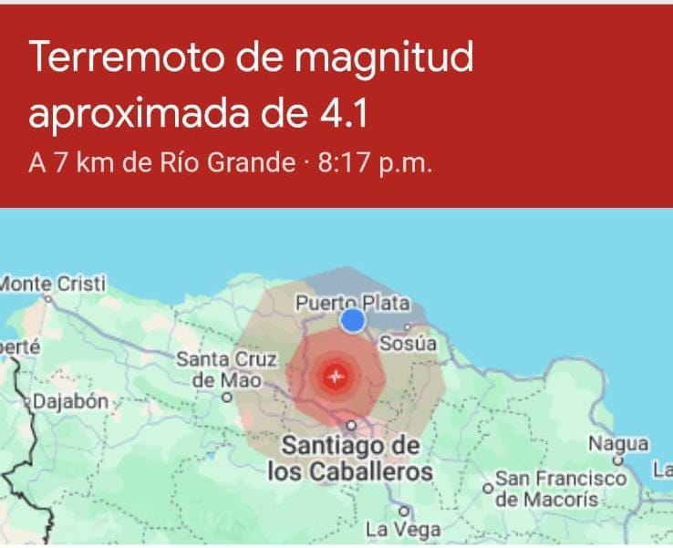 Puerto Plata.-Un movimiento sísmico de magnitud 4.2 se sintió alrededor de las 8:17 de la noche de este martes a 11 kilómetros al este-sureste de Altamira, al norte de Santiago y zonas aledañas, generando alerta entre la población.