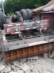 Tres personas murieron y otras dos resultaron heridas este martes al volcarse una patana cargada de materiales para la construcción en la carretera principal de la comunidad Palmar Grande, del municipio de Altamira en esta provincia.